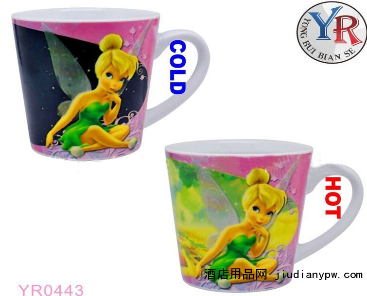 变色杯,又称魔术杯。即在杯子里注入热水/冷水,杯体将会发生颜色变化,在没有变色之前的颜色有黑色,红色,行色,绿色,蓝色,褐色,紫色,浅蓝,浅黄,浅绿,淡红,淡紫等。包括网点效果,都可以设计成变色杯表面层。