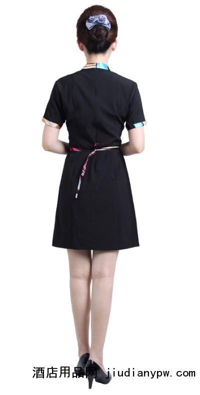 短袖酒店工作服 服务员套装女裙 围裙 饭店餐厅制服 夏,涤纶面料,排湿吸汗。北京金丰凯乐服装服饰有限公司。