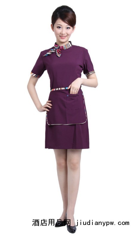 短袖酒店工作服 服务员套装女裙 围裙 饭店餐厅制服 夏,涤纶面料,排湿吸汗。北京金丰凯乐服装服饰有限公司。
