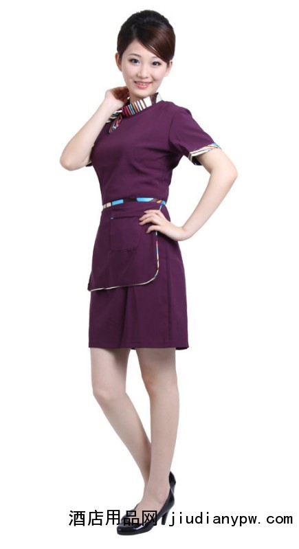 短袖酒店工作服 服务员套装女裙 围裙 饭店餐厅制服 夏,涤纶面料,排湿吸汗。北京金丰凯乐服装服饰有限公司。