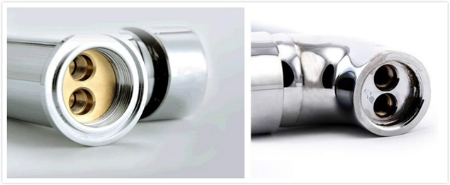 通过表格我们可以看出,酒店老板网的这款水龙头采用流线型设计,加厚防滑控制手柄,水流控制自如,表面三层电镀处理,光泽度高,细节处理得十分精致,整体感觉简约大方、柔美典雅,线条流畅。而淘宝这款产品,手柄为普通手柄,表面处理稍显粗糙,光泽度较低,可以看出酒店老板网提供的产品无论在水嘴、手柄、龙头弯度等细节处都更为优质。